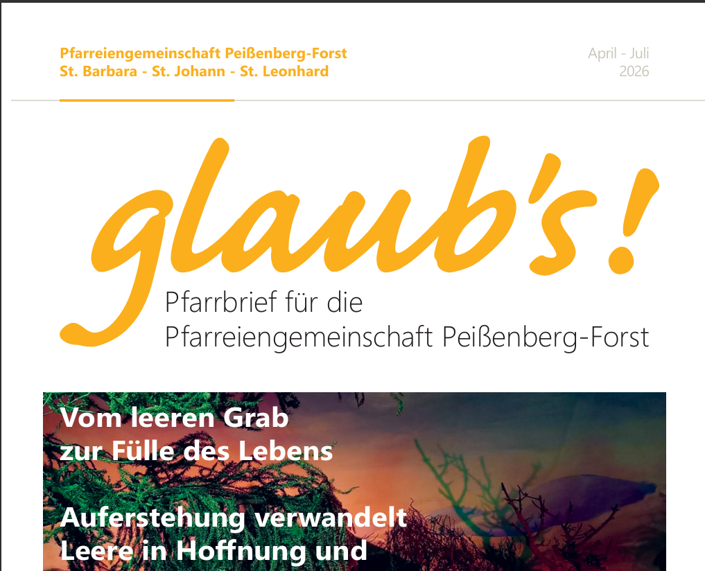 Als PDF zum Herunterladen: unser Pfarrbrief „glaub’s“ Ostern 2026 (hier klicken!)